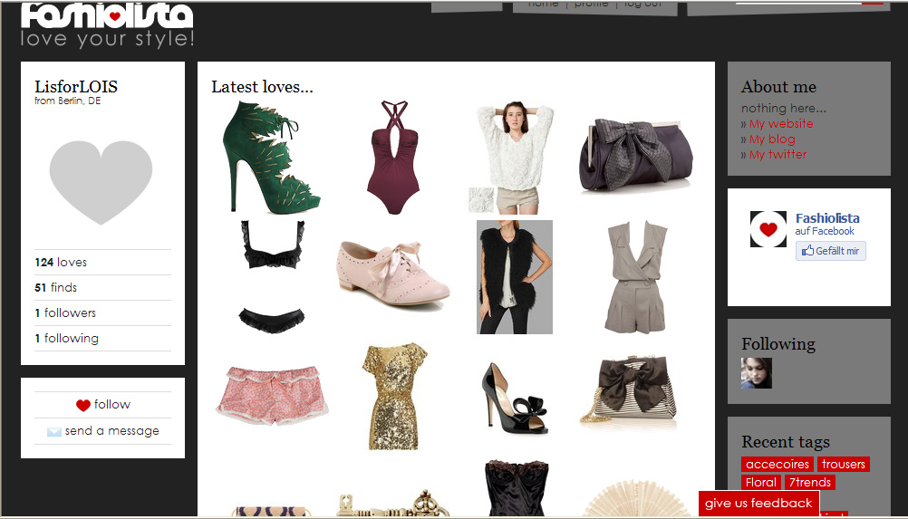 I’ve found a new site, that I’m head over heels in love with. Who would have thought that Online window shopping could one day be so easy? (Well, three years ago we would have never seen an iPad coming^^) Anyway the site is Fashiolista and it lets you bookmark your favourite items. Easy as that!